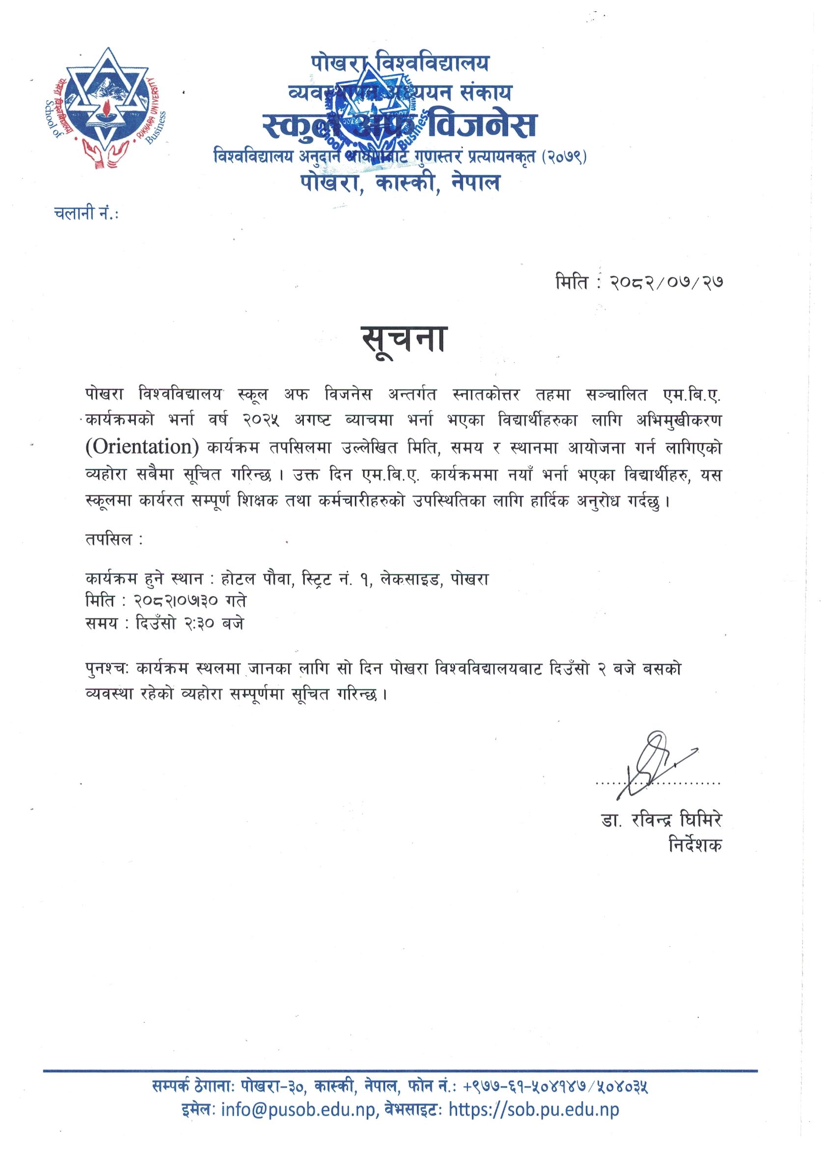 MBA 2025 August Intake को अभिमुखीकरण (Orientation) कार्यक्रम सम्बन्धी सूचना